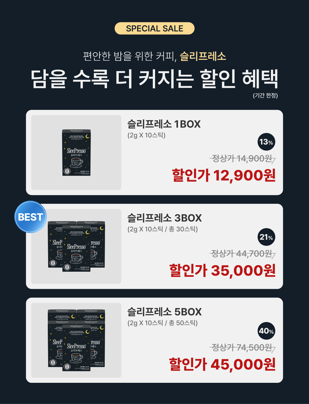 [공식] 편안한 밤을 위한 디카페인 커피 슬리프레소 (신제품)
